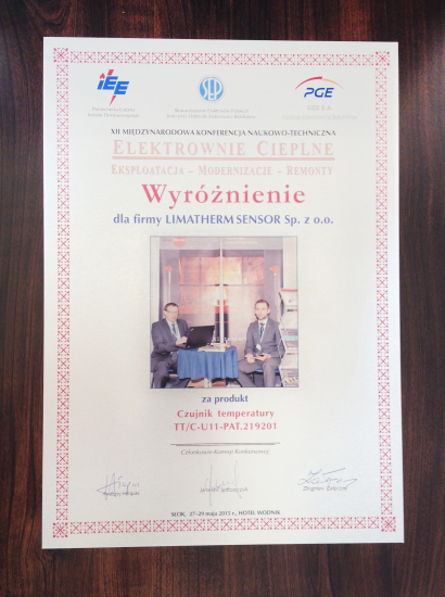 Na potwierdzenie innowacyjności i ciągłego rozwoju firmy Limatherm Sensor otrzymaliśmy wyróżnienie za produkt „wysokotemperaturowy termoelektryczny czujnik temperatury”. Czujnik wykazuje odporność pomiarową na temperaturę do 2300°C. Konstrukcja czujnika oparta jest o termoelement wolframowo-renowy z zastosowaniem osłony molibdenowej.