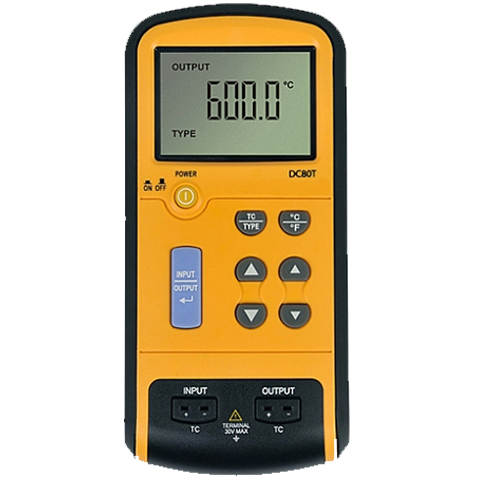 Kalibrator czujników termoelektrycznych DC80T służy do pomiaru i symulacji ośmiu typów termopar: J,K,T,E,R,S,B i N, oraz napięcia w zakresie -10mV do +75mV.
