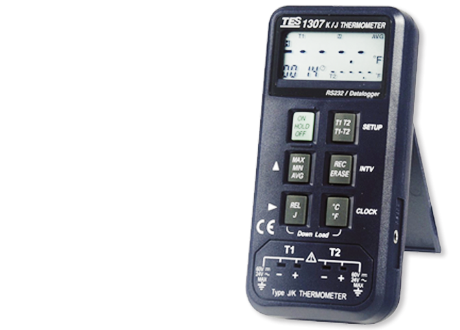 Miernik z podwójnym wejściem na termoparę K lub J, z wbudowaną pamięcią i funkcją rejestracji danych. Możliwość podłączenia do komputera PC przez interfejs RS232. Podwójny wyświetlacz i zegar czasu rzeczywistego.