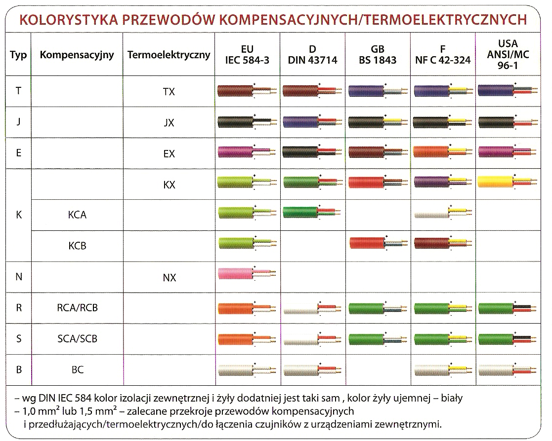 - skład i kolory przewodów wg EU IEC 584-3