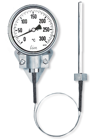 Termometr gazowy z kapilarą do zdalnego odczytu lokalnego pomiaru temperatury. Możliwość odseparowania tarczy od miejsca punktu pomiarowego. Termometr przeznaczony do zastosowań przemysłowych tj przemysł chemiczny, spożywczy, petrochemiczny, energetyczny itd. Klasa dokładności 1,0% i wykonanie w całości ze stali nierdzewnej. Duża możliwość konfiguracji urządzenia - zarówno rodzaju przyłącza jak i typu montażu i osłony kapilary, czyni go bardzo uniwersalnym w zastosowaniu. Tarcza typu „TWIST” z możliwością skorygowania wskazania +/-6% Istniej możliwość wypełniania obudowy gliceryną lub olejem silikonowym co przeciwdziała negatywnym skutkom jakie wywołuje występowanie drgań na obiekcie.